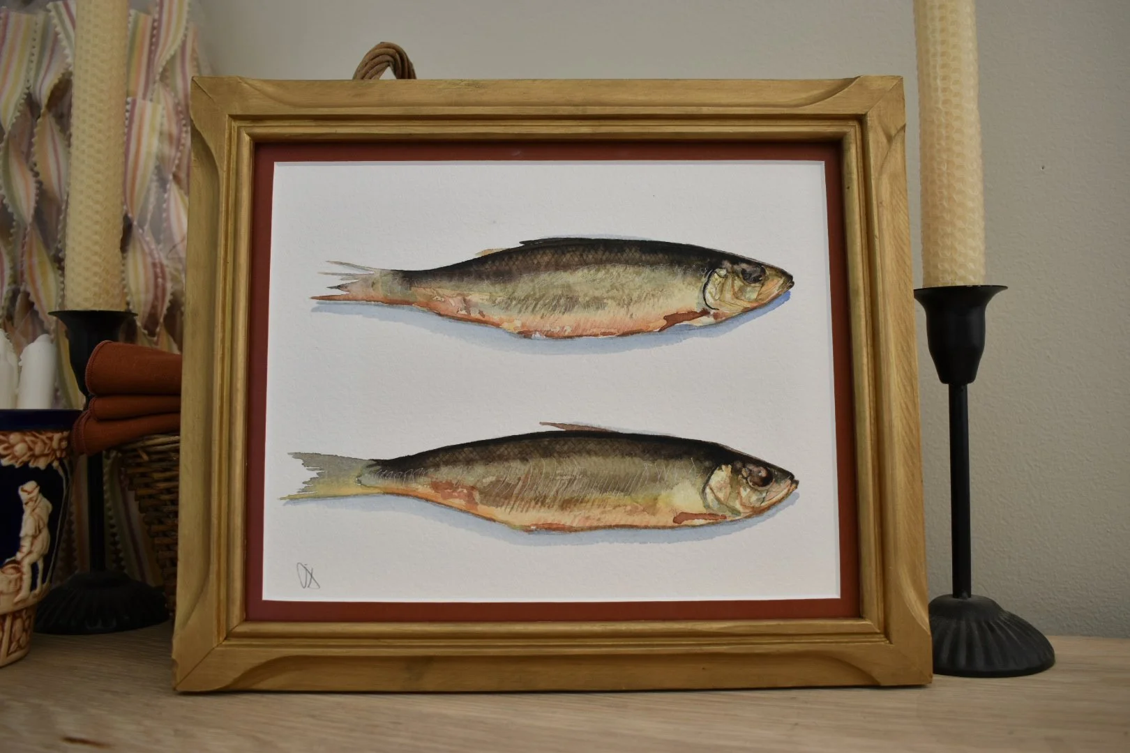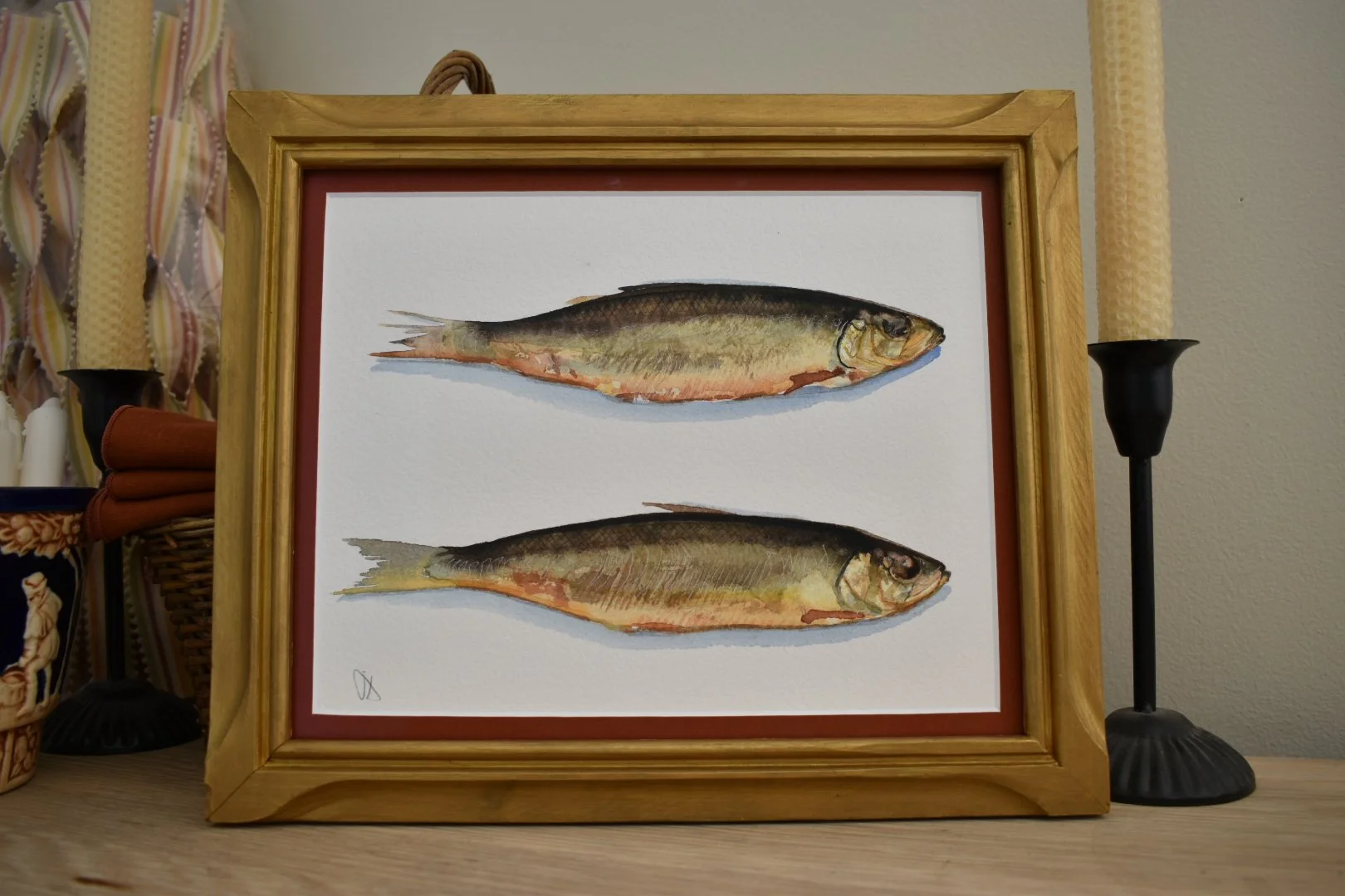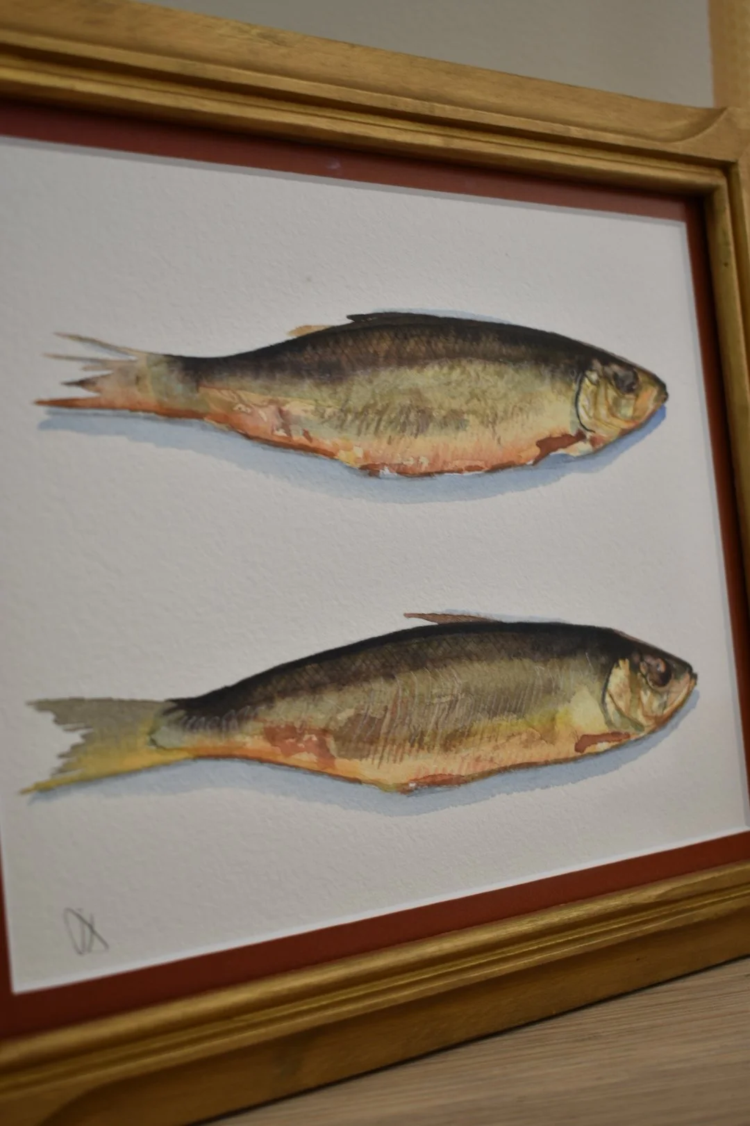 Shop › Two Herring Image 1 of 6 Image 2 of 6 Image 3 of 6 Image 4 of 6 Image 5 of 6 Image 6 of 6 Two Herring $400.00 Two herring bronzed and golden from smokeFramed in solid wood wood frame under UV protective gallery glass8x10” Add To Cart Added! Two herring bronzed and golden from smokeFramed in solid wood wood frame under UV protective gallery glass8x10”